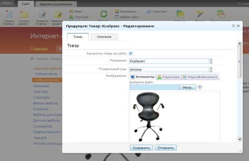 Технология "Эрмитаж" позволяет редактировать веб-проект не заходя в административный раздел - как бы "паря" над сайтом и настраивая параметры во всплывающих диалоговых окнах. Это позволяет более эффективно управлять информацией, т.к. не требуется переключаться в административный раздел.